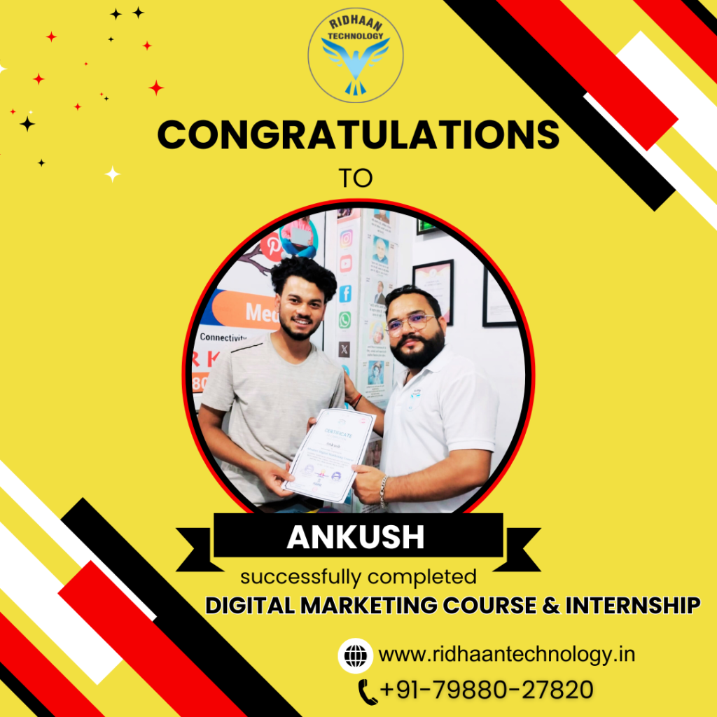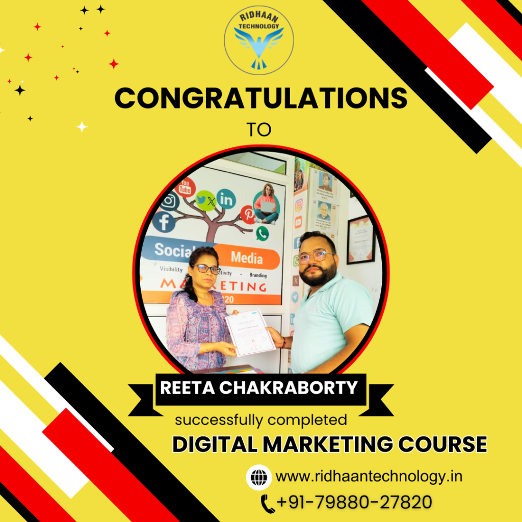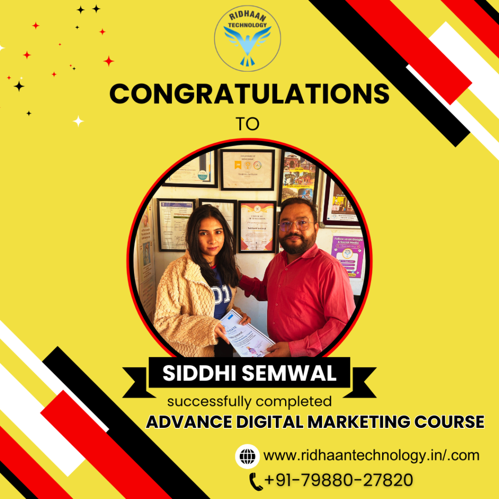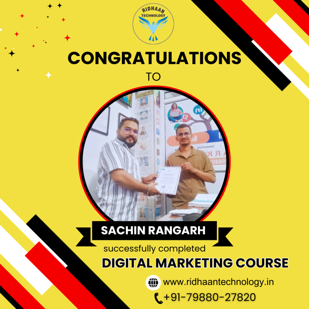 In the dynamic realm of digital marketing, overcoming challenges is key to realizing dreams. At Ridhaan Technology, we empower career aspirants to build successful futures in digital marketing. With years of industry experience, we offer basic to advanced Digital Marketing certificate course that provides practical, hands-on training to equip you with in-demand skills. Join us to master strategies and tools essential for a thriving career in digital marketing. 50% off FEE discount for 1st Five enrollments and Pahadi students. Hurry Up!